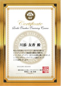 日本伝統のレイキの研鑽を積み、一般社団法人 日本レイキセラピスト協会より「ティーチャーディグリー」の認定を受けております。 確かな技術と研鑽に基づいた、高品質で安心感のあるヒーリングをお届けいたします。