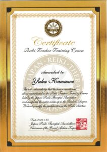 Below is my official certification, ensuring that your healing session is guided by recognized professional standards and the authentic spirit of Japanese energy work.